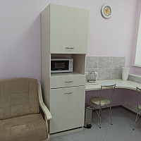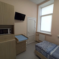 Имеется одноместная палата повышенной комфортности (№14), оборудованная отдельным санузлом (душевая кабина, умывальник, унитаз), кроватью, микроволновой печью, электрочайником, холодильником, пеленальным столиком.