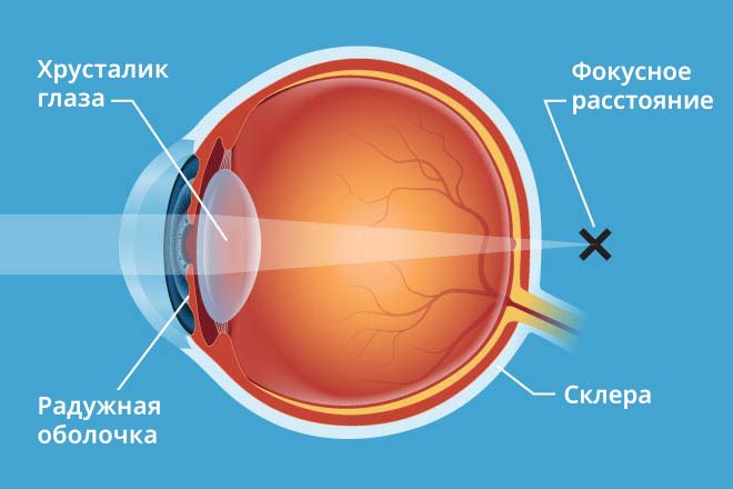С возрастом хрусталик глаза теряет свою эластичность, утрачивает способность менять форму и правильно фокусировать зрение на сетчатке. В результате при старческой и других видах дальнозоркости фокус зрения находится за сетчаткой.